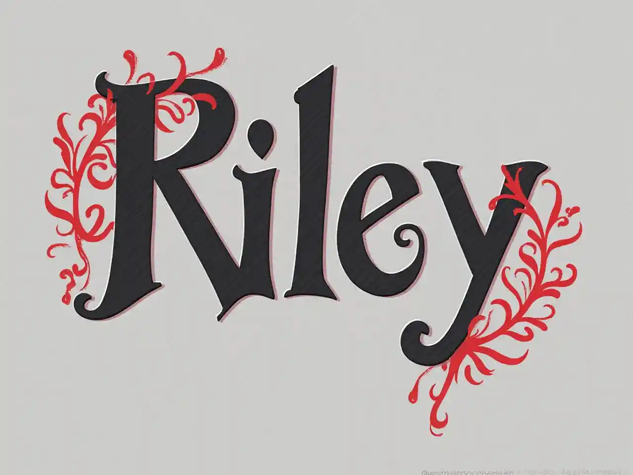 Nimi Riley kirjoitettu mustalla ja punaisella kalligraafilla harmaalla taustalla.