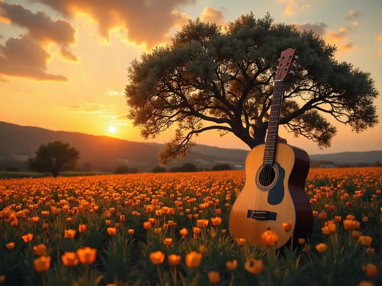 AubreyEspanjan kitara, folklori, kenttä, auringonlasku, puu, yksityiskohdat, oktooni, puu, kukat