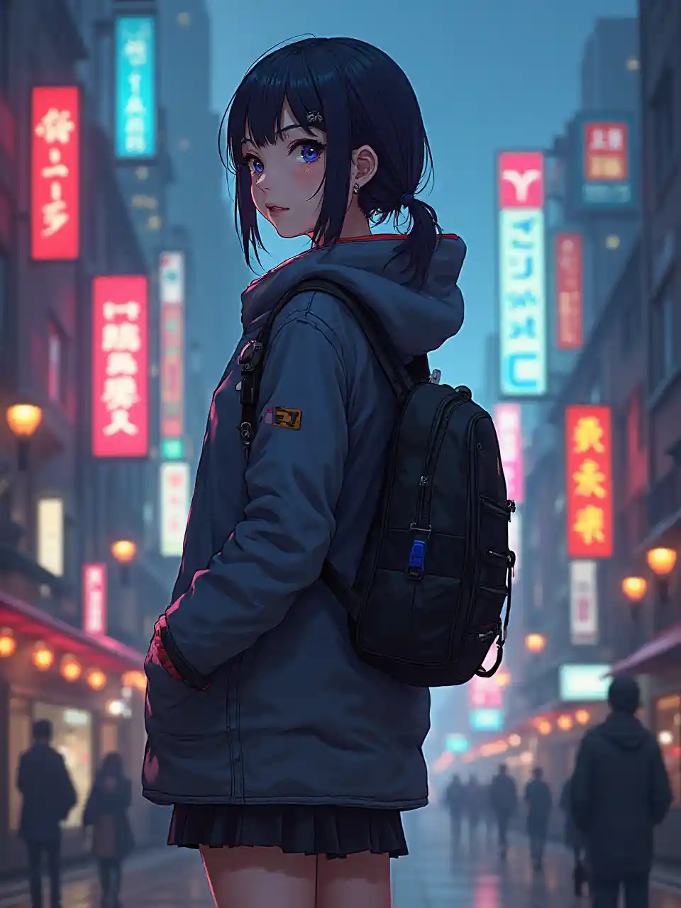 KingstonAnime-tyttö Japanissa Tokiossa, kyberpunki-teema