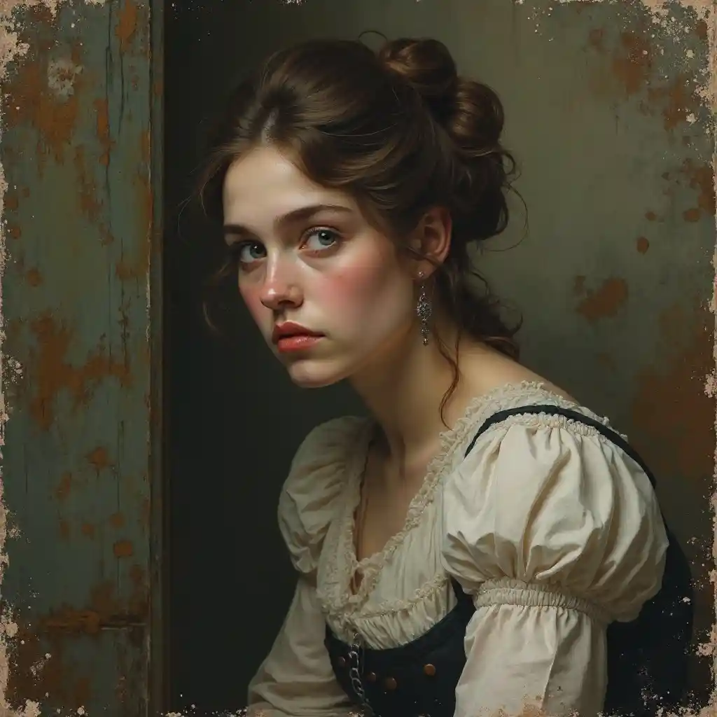 Surullinen viktoriaaninen nainen impressionistisessa tyylissä