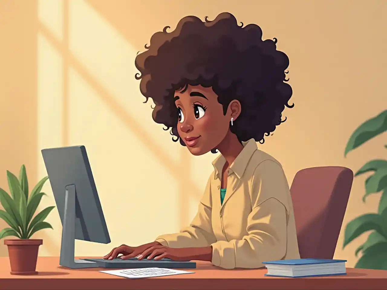 LilyUne femme africaine aux coiffures bouclées naturelles porte des vêtements confortables et travaille sur l'image animée d'un projet sur son ordinateur.