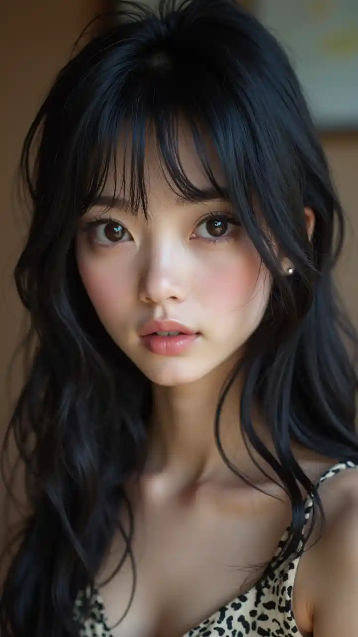 Une fille asiatique aux cheveux noirs et aux grands yeux