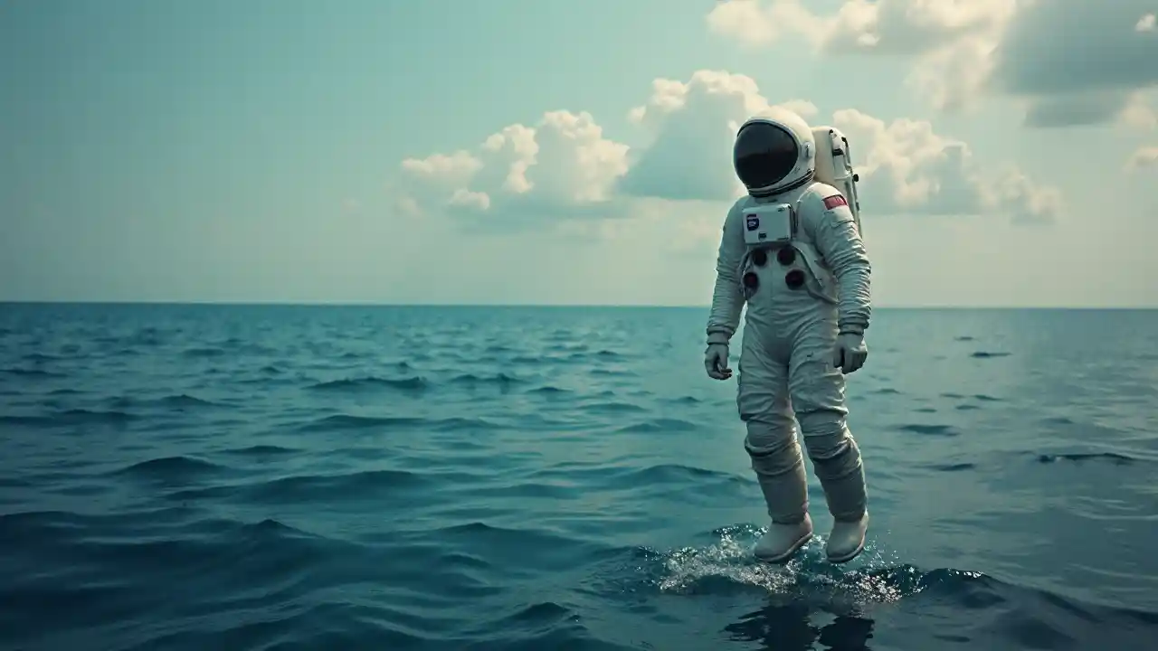 Astronauta flotando sobre el océano, style Daft Punk, photos réalistes