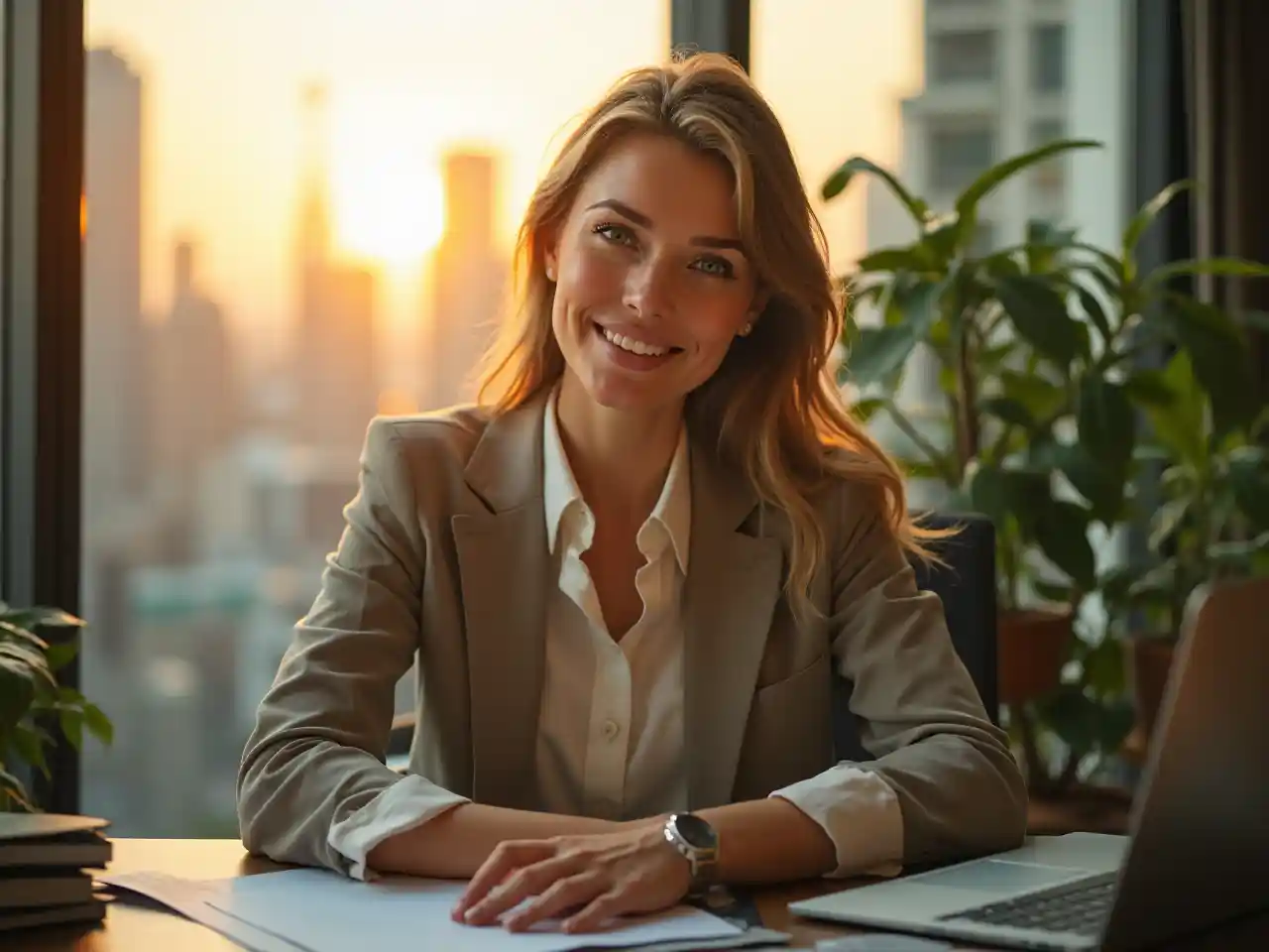 Jeune femme: la plus belle femme a un visage beau et intelligent à l'âge de 19 ans, la plus belle femme a un visage clair et la plus belle femme a les yeux verts et les cheveux blonds dorés de la femme la plus belle et la plus belle femme aux États-Unis et en Europe. Près de nombreux bureaux de PDG modernes et beaux, assis sur la plus belle chaise moderne près du bureau, la plus belle femme a ri à la caméra (riant avec la plus belle femme) Et le plus beau visage de femme et la plus belle bouche de femme et les plus belles dents de femme, portant le plus beau tailleur de bureau bling bling or et la plus belle chemise bling bling or et la plus belle cravate bling or, beaucoup des plus beaux ordinateurs portables et gros ordinateurs modernes et de nombreux papiers et de nombreuses pages et de nombreux camarades de classe et de nombreux téléphones et fon ouvert devant elle Travailler avec elle Très attentive, elle est dans le bureau du PDG et la plus belle femme. Il y a beaucoup de plantes les plus belles dans le coin. Il y a beaucoup de grandes fenêtres et paysages des plus belles villes et des plus beaux gratte-ciel à l'arrière-plan. Le soleil brille le plus beau, et il est très doré à l'horizon.