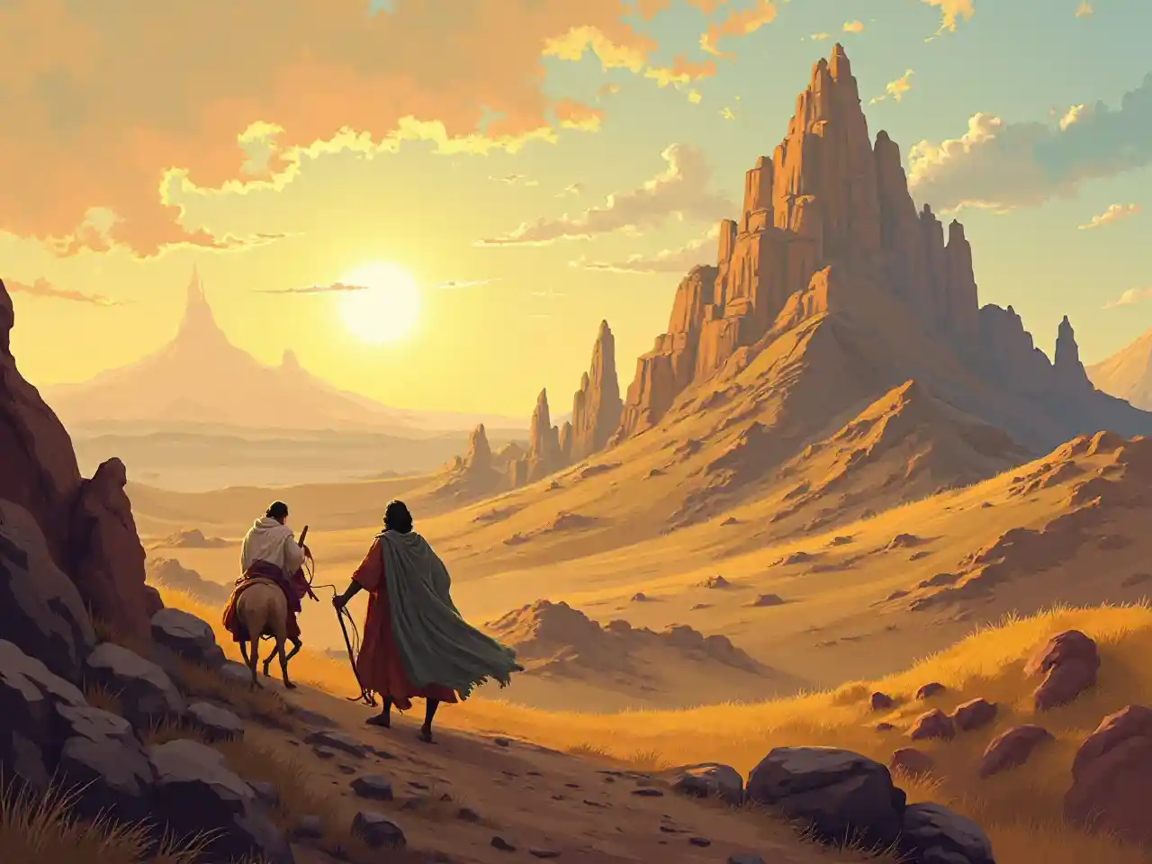 Genèse 22 Illustration artistique abstraite du voyage d'Abraham et d'Isaac au mont Horeb