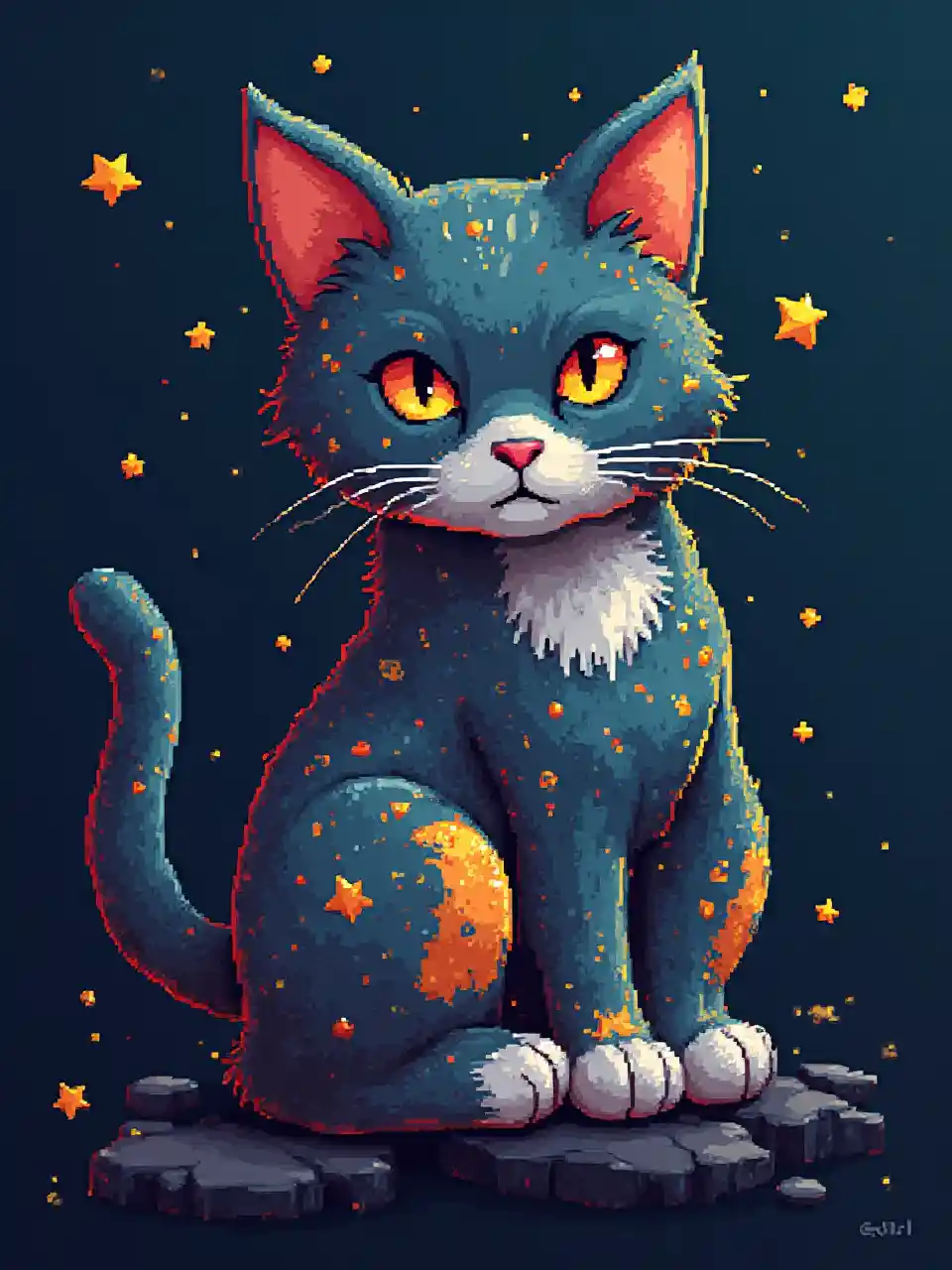 ScarlettBlockchain chat pixelisé sur le thème du logo Bitcoin