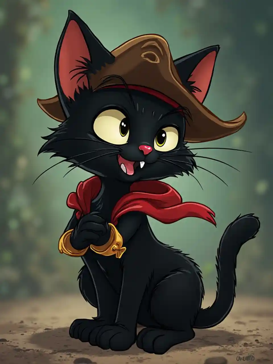 AidenLe chat noir de style dessin animé Disney, surnommé Black. Pirates