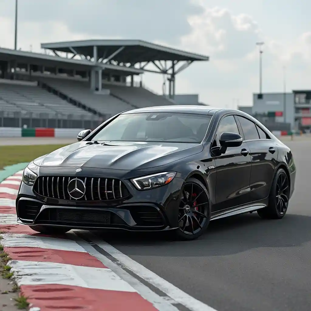 JoannaUne CLs noire 64 amg de roues noires sur la piste