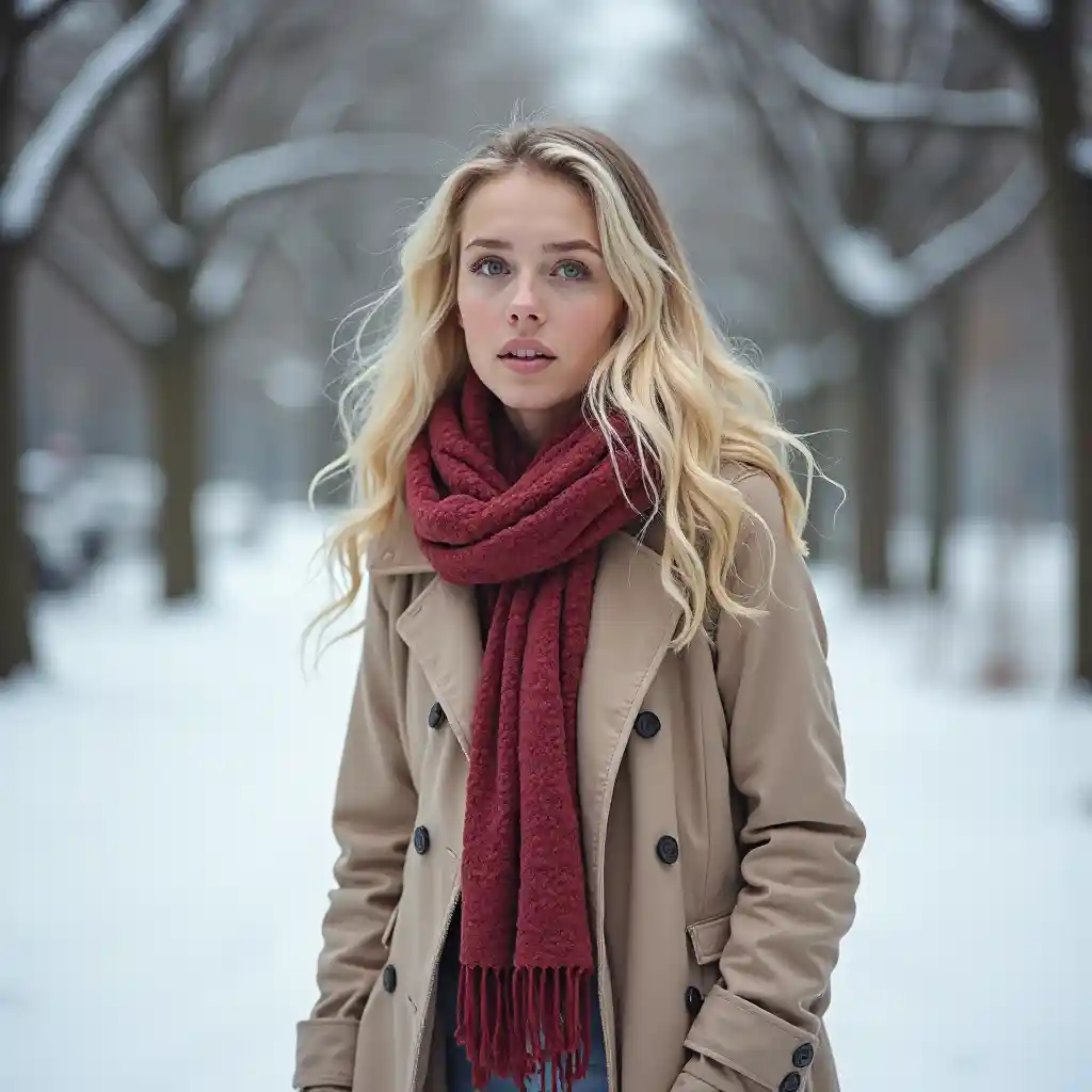 La belle blonde qui se balade dans la neige
