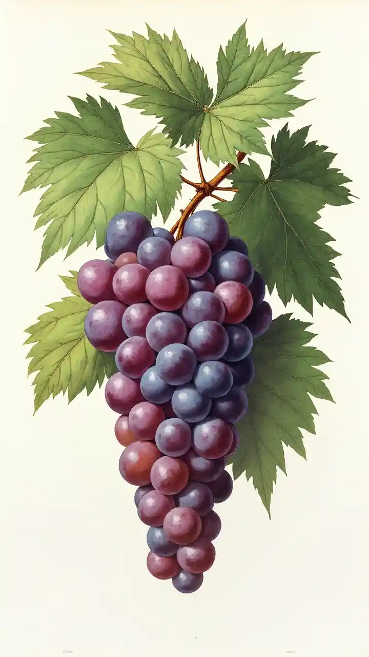 Gravures d'illustrations botaniques. Les raisins sont sur des vignes à feuilles. Par Pierre-Joseph Redouté. Fond blanc