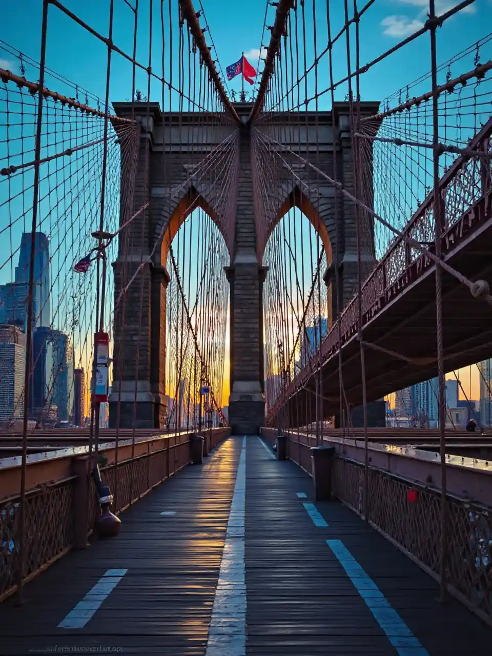 DanielBrooklyn Bridge, détails élevés, lumière contrastée, couleurs profondes et riches