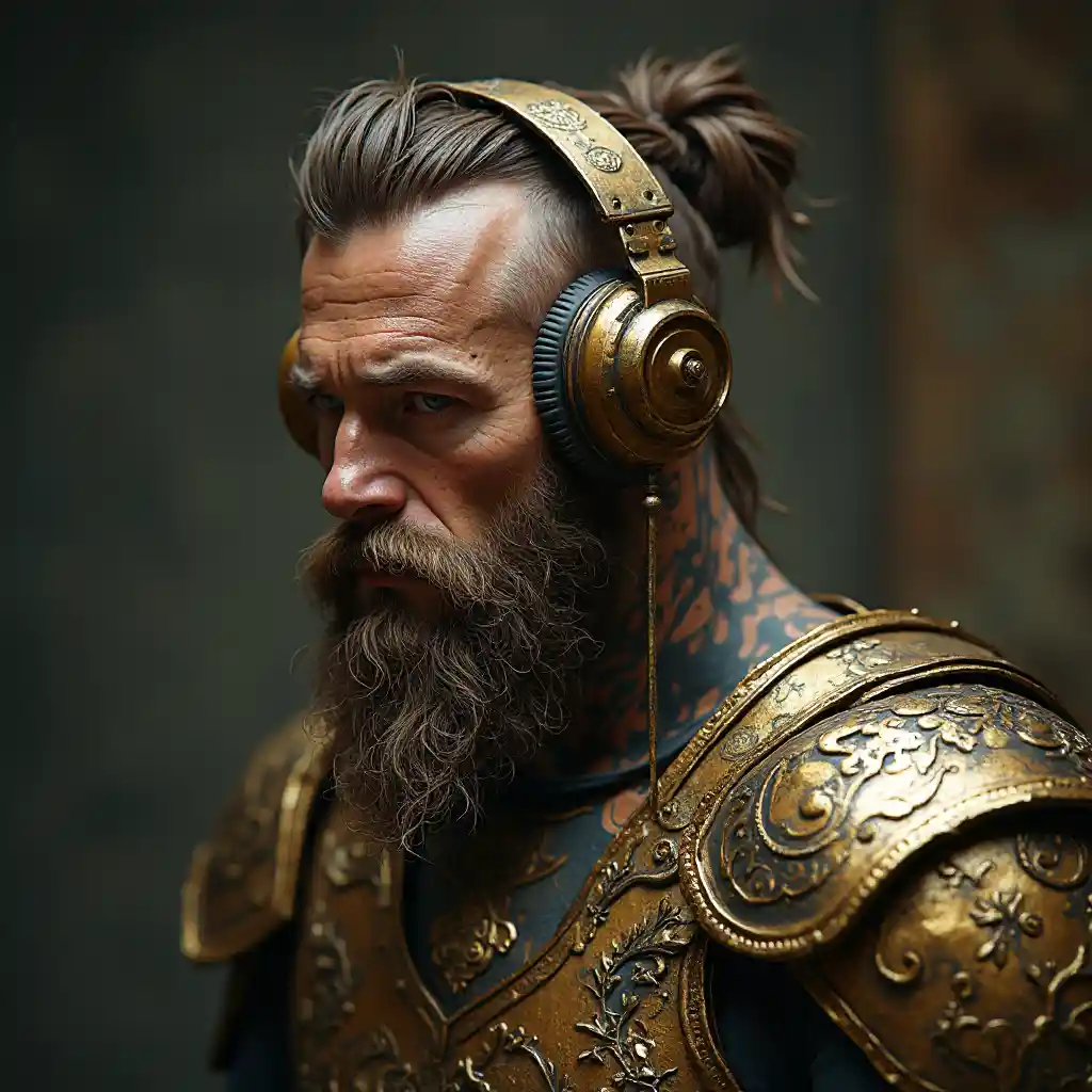 Des Vikings avec une armure dorée aux écouteurs