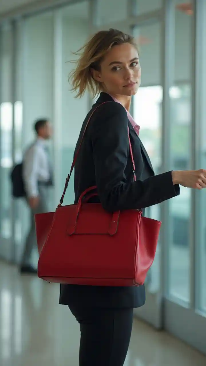Une femme d'affaires avec un sac à main en cuir rouge