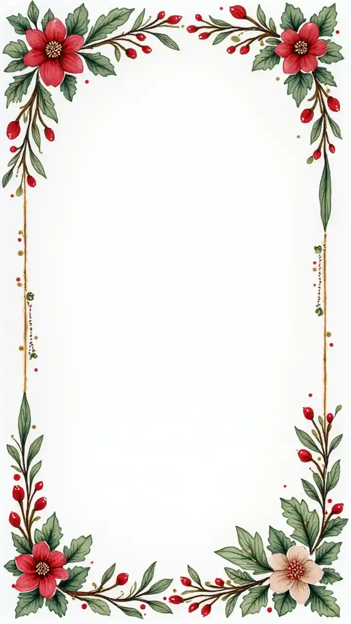 PenelopeLa papeterie de Noël fantasque est très détaillée avec des macramés peints à la main et des couleurs vives de bordures de Noël parsemées sur une feuille de papier blanc