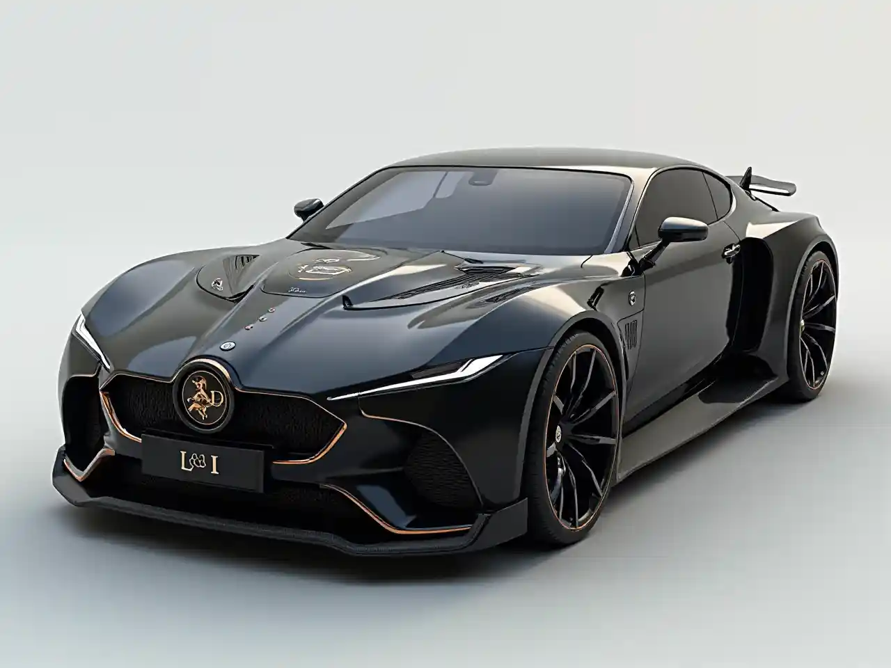 Un rendu 3D du design du concept-car, mettant en scène l'apparence du concept-car 2024. La voiture, observée du côté passager, est peinte d'une couleur métallique noire Mythos. Le logo de la marque du capot présente l'image d'un bouclier rond, et l'INIT L I est mis en évidence sur le devant. Les phares sont blancs néon. La plaque d'immatriculation indique "L & I". Les images sont super-détaillées, brillantes et brillantes. La voiture a quelques modifications, comme des accessoires brillants. Il y a un étalon gaufré sur le capot et surélevé de 4 pouces, avec aérateur. Avec un effet de terrain. La dalle de quart met en valeur 5 pouces. Réaliste. Le lettrage est interdit sur le pare-brise.
