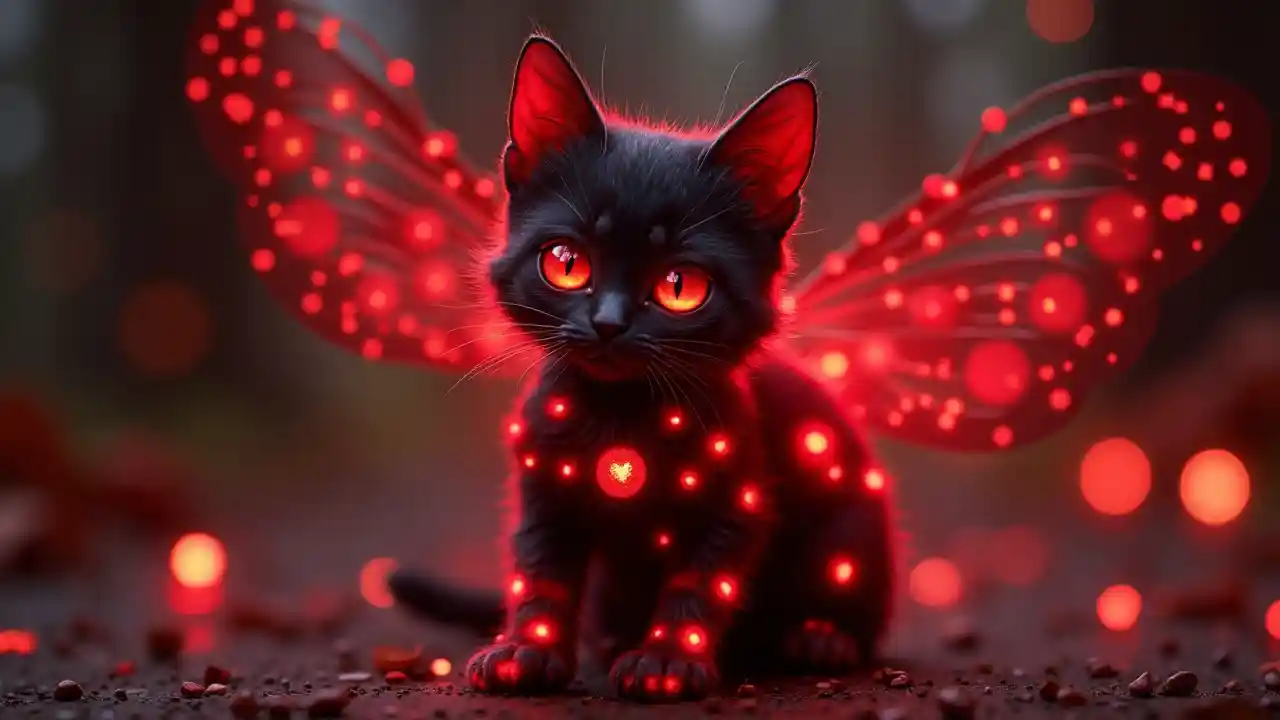 Rouge et noir, mojorety red mignonne fantaisie lady bug theamed cat, aura rouge lumineuse, comme c'est mignon et mignon