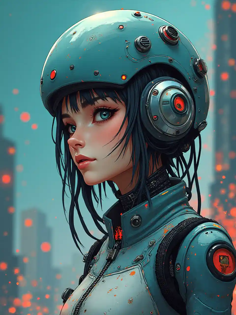 Affiche publicitaire style (rétro Cyberpunk) Anime, femme casquée (cyborg: 1,3), Cyberpunk, Cyberpunk Art, Cyberpunk (beaucoup de fils et beaucoup de petites pièces: 1,4) (Xenotrip: 1,5). Professionnel, moderne, axé sur le produit, commercial, accrocheur, hautement détaillé