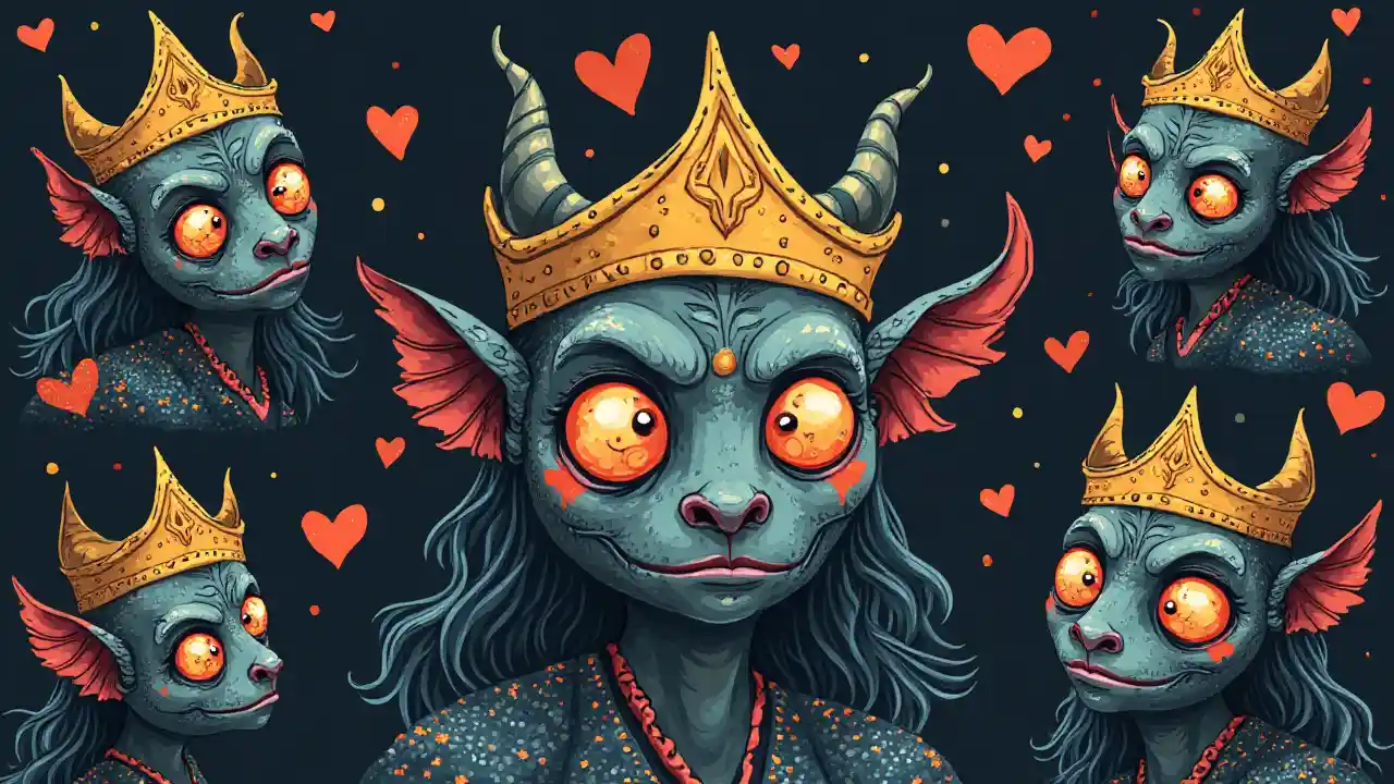 Coltonpattern cover illustration little funny devils love Satan mask demon theater moon crown