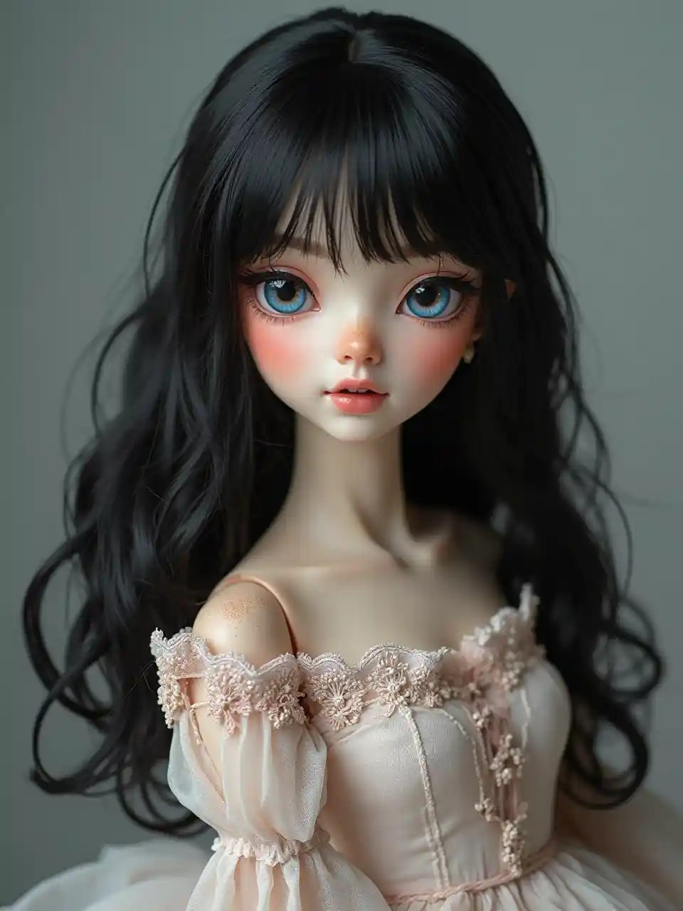 Un visage de poupée délicat qui capte beauté et détails vifs