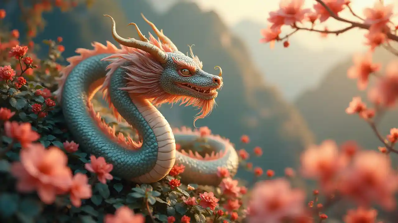 "Le film présente toujours un dragon chinois enveloppé de fleurs vibrantes. L'allongement du dragon et l'élégance du corps en forme de serpent créent un festin visuel élégant. Ses écailles scintillent de belles teintes irisées, complétées par des cornes majestueuses. Saisissant l'essence de l'art traditionnel chinois, cette créature mythique est présentée avec une faible profondeur de champ et un épisode doux. Avec des détails exceptionnels, le scénario rappelle les productions à gros budget et est rehaussé par le bokeh et la perspective théâtrale. La conception artistique est épique, la vision est époustouflante et un morceau de texture de film évoque un sentiment durable. Malgré sa beauté granuleuse, animée, la composition reste nette et immersive, évitant les éléments abstraits ou déformés. Les images, dépourvues de défauts tels que la faible résolution, la mauvaise anatomie ou les artefacts textuels distraits, conservent une qualité impeccable, sans filigrane ni signature. "