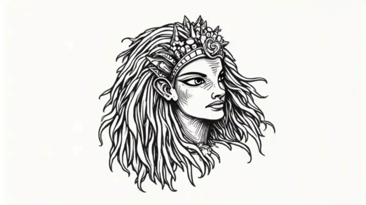 RobinCléopâtre égyptienne, concept de logo couleur noir et blanc, illustration peinte à la main, forme simple
