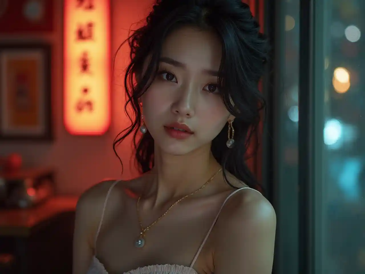 Femme coréenne élégante, star de la K-pop, ambiance théâtrale, photographie professionnelle haute définition, réaliste, ultra-haute résolution, rendu photo réel, chef-d'œuvre superbe, réaliste et réaliste, couleurs vives, contraste élevé, capture avec objectif f1.6, ton riche, éclairage dramatique, définition haute définition 8k avec détails complexes, qualité suprême, style cinématographique, visualisation de pointe, création numérique artistique sans faille et sans déformation, finition fluide et charmante, Une représentation parfaitement délicate.
