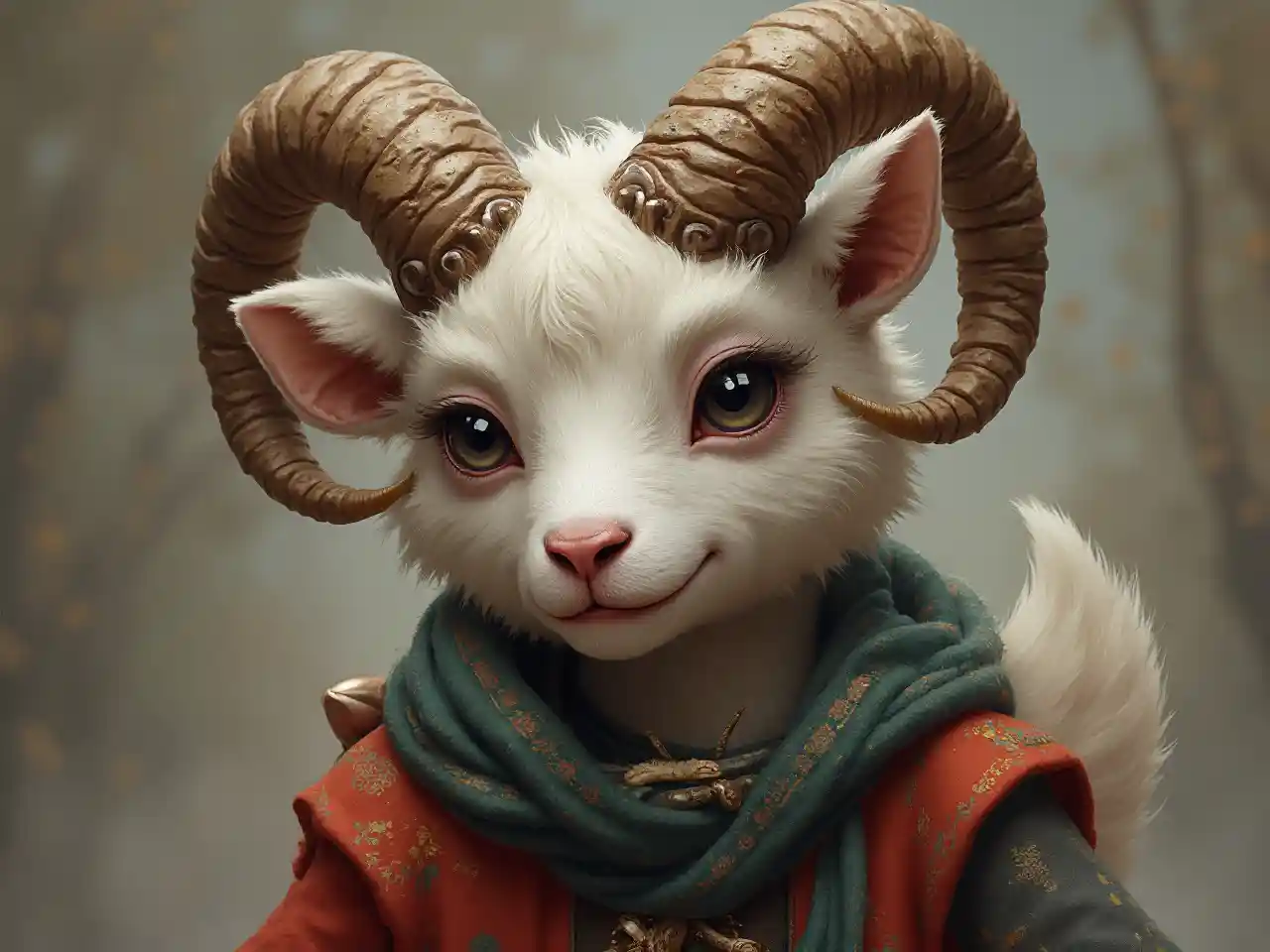 RileyLe faune, la fourrure, les yeux de chèvre, les lèvres de mouton, vêtus de costumes asiatiques, n'ont qu'une paire d'oreilles.