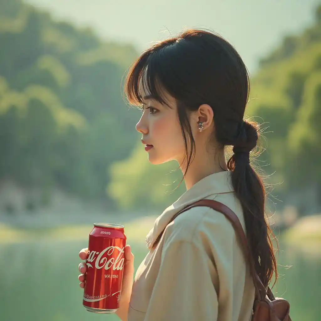 Une Japonaise tient du Coca-Cola aux teintes chaudes