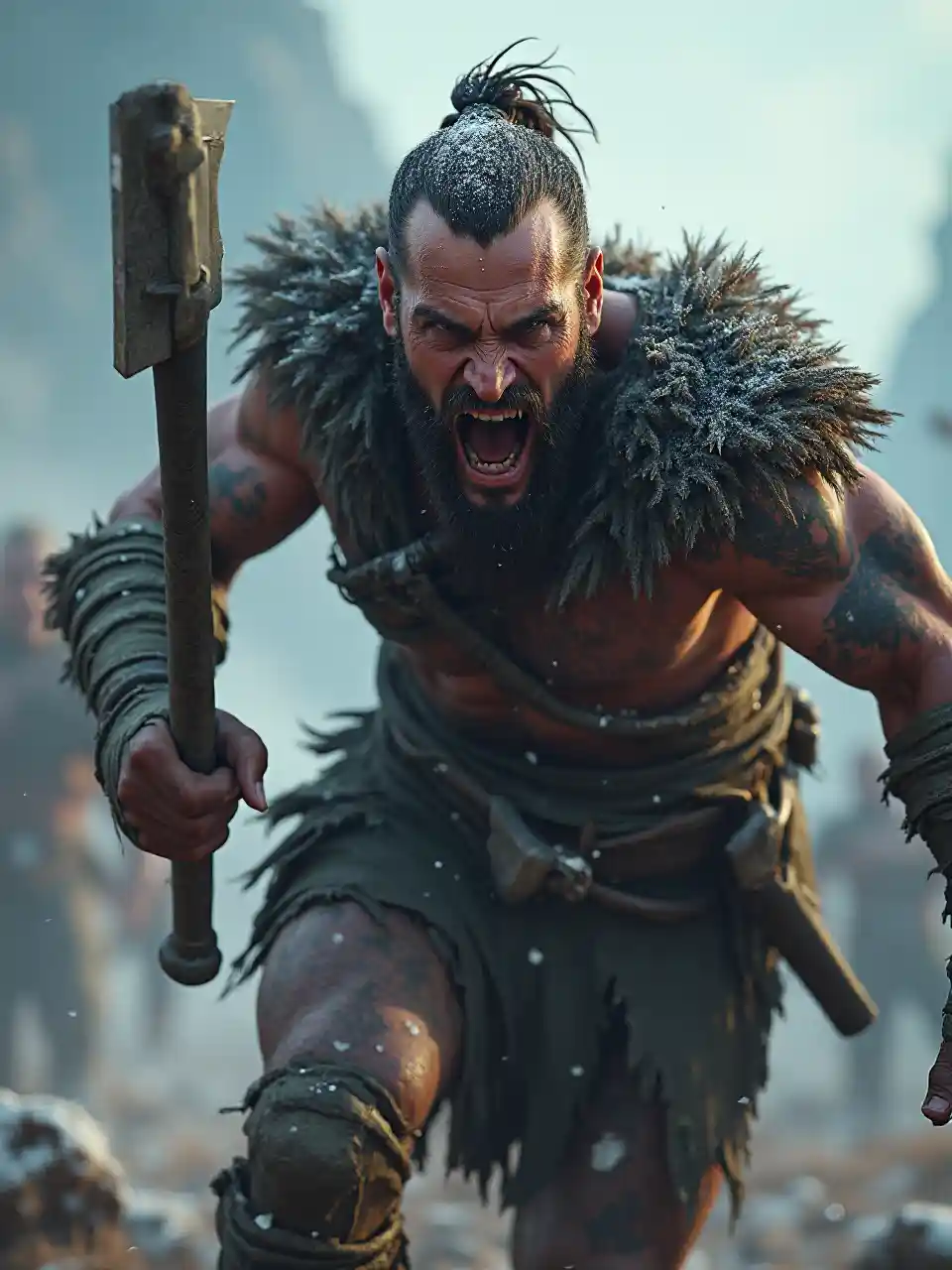 Des barbares masculins féroces ont chargé dans la bataille avec des tomahawks, des cris de bataille féroces, des gros plans ultra-détaillés, des expressions faciales fermes, des tenues grossières faites à la main, des peintures de guerre tribales, un fond de champ de bataille chaotique, des chutes de neige comme des tourbillons, des lumières de film dramatiques, un style d'art conceptuel, rendu dans Unreal Engine 5, technologie RTX avec suivi radiographique, images réalistes, filigranes uniques, sculptures de membres manquantes artistiques, évoquant l'énergie originale et le pouvoir original.