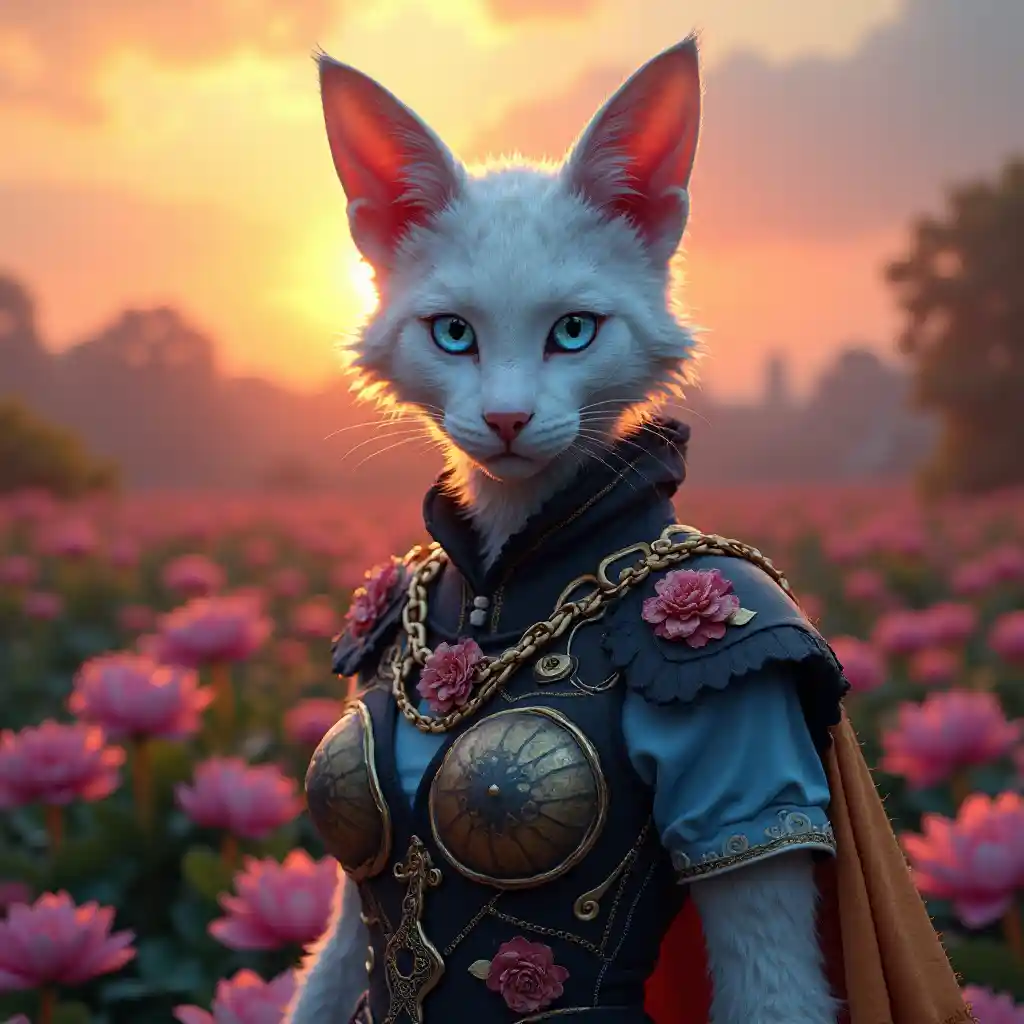 Sous le soleil couchant, avec des brocarts fleuris aux couleurs vives, une fille punk tabaisienne accrocheuse se tenait fermement au centre de la scène. Sa fourrure blanche rustique brillait dans une lumière tamisée, tandis que ses yeux bleus brillants semblaient regarder directement l'écran avec des yeux forts. Elle portait un ensemble complexe d'armure de mâchoire fleurie légère et d'armure de lotus noire élégante, et une cape colorée vive sur ses épaules pour compléter. L'angle de la caméra capte sa posture majestueuse, elle se regarde en face du public et son expression mêlant mystère et complotisme est fascinante. Cette œuvre d'art numérique haute définition dévoile des détails délicats, capturant chaque subtile émotion sur son visage. Sa silhouette dynamique et son regard perçant créent une expérience immersive qui donne au spectateur l'impression d'être face à elle. UHD, HDR10, 16K, ridicules, assurent une qualité sans faille, sans distorsion, répétition inutile, ou artisanat, offrant un festin visuel pur et sans faille.