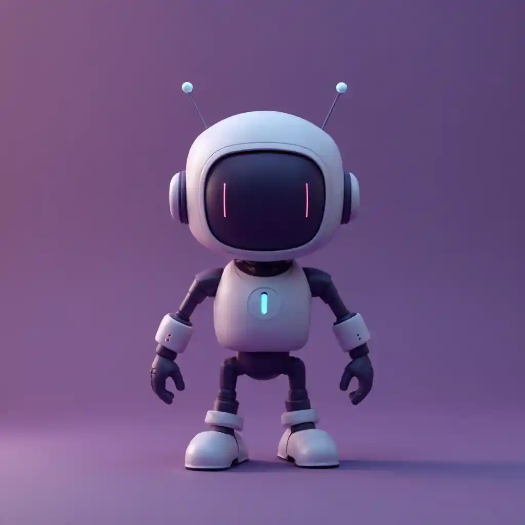 IsaiahIllustration 3D minimaliste petit futur robot mignon, simple et élégant, teinte blanche et violette profonde