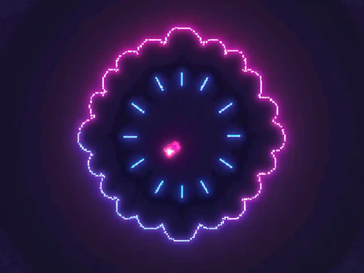 BenjaminPixel Art My World Block 16x16, violet foncé avec rose fluo et bleu Tête Gaia de Botania, silhouette lumineuse, atouts du jeu