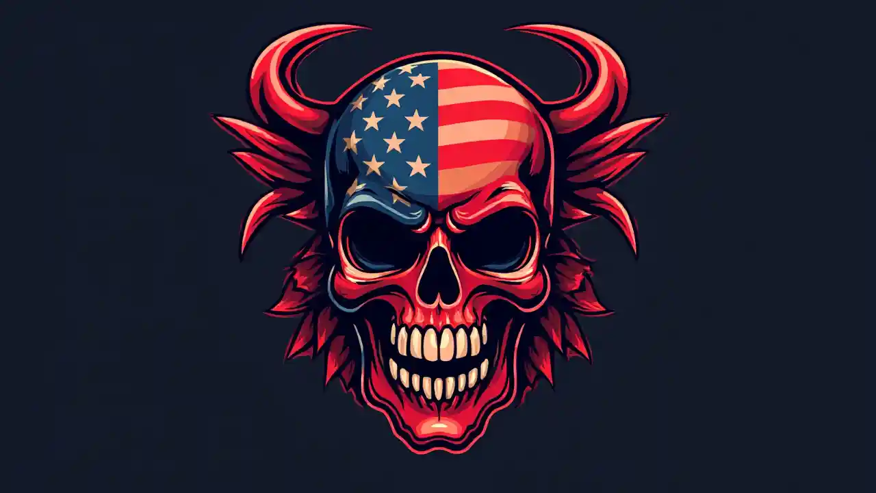 MackenzieVector Le crâne rouge américain a le logo du drapeau et de la mascotte des étoiles, des jeux vidéo, des couleurs vives, des logos de jeu, des images vectorielles