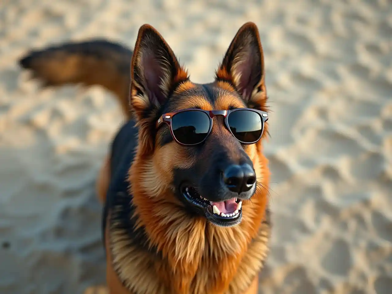 SawyerPortrait d'un berger allemand portant des lunettes noires