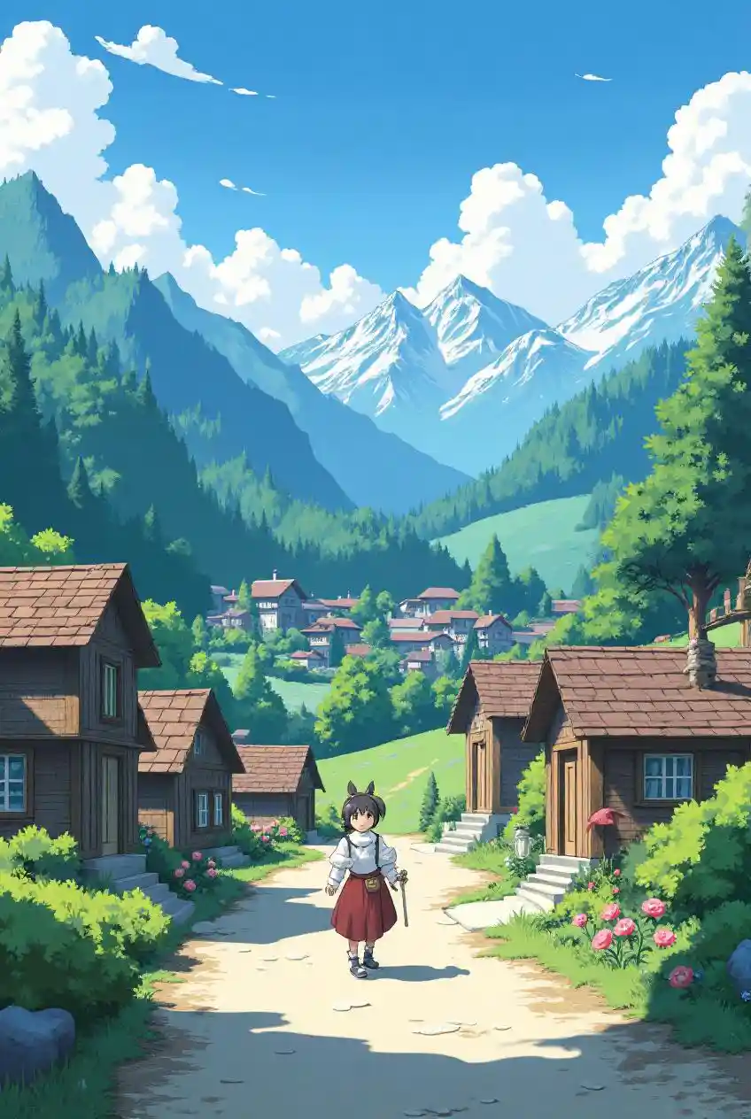 Studio Ghiblis réinvente un village pittoresque et alpin.