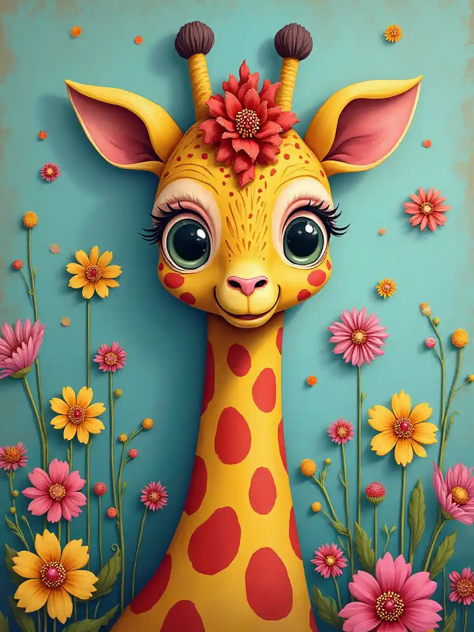 girafa em flores pelo artista arne thun,no estilo de natalia rak,resolu çã o 8k,est é tica vintage,papel de parede,GFS animados,naoto hattori,altamente realista--ar 43:64--v 6。0