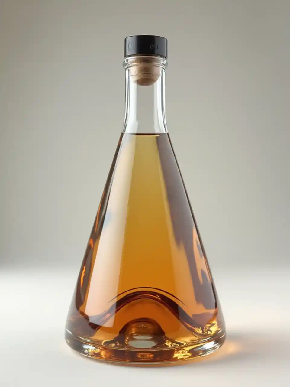 IsaiahBouteille en verre triangulaire, bouteille de rhum transparente, ((mockup no label)) bouteille isolée, fond de paysage cubain, bouteille de rhum, verrerie, récipient de boisson, nature morte