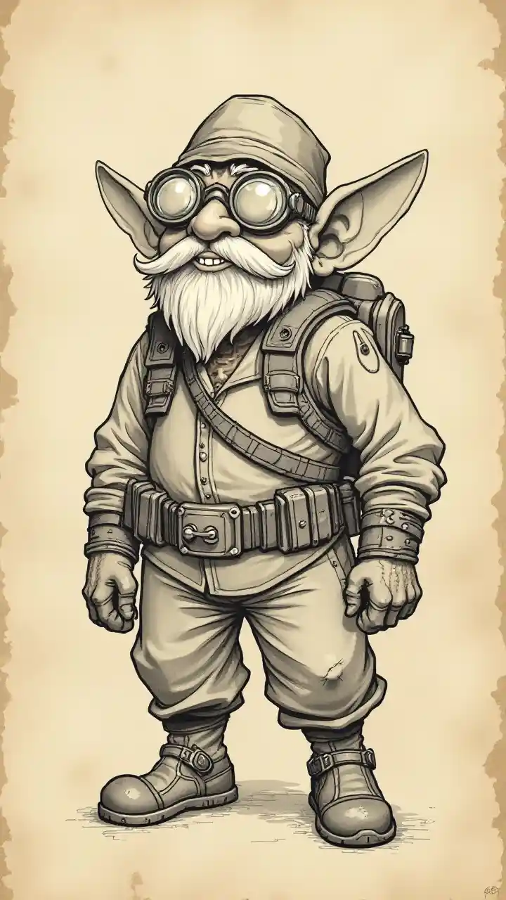 Mechanical Gnome Engineer Sketch with Goggles and Tools
