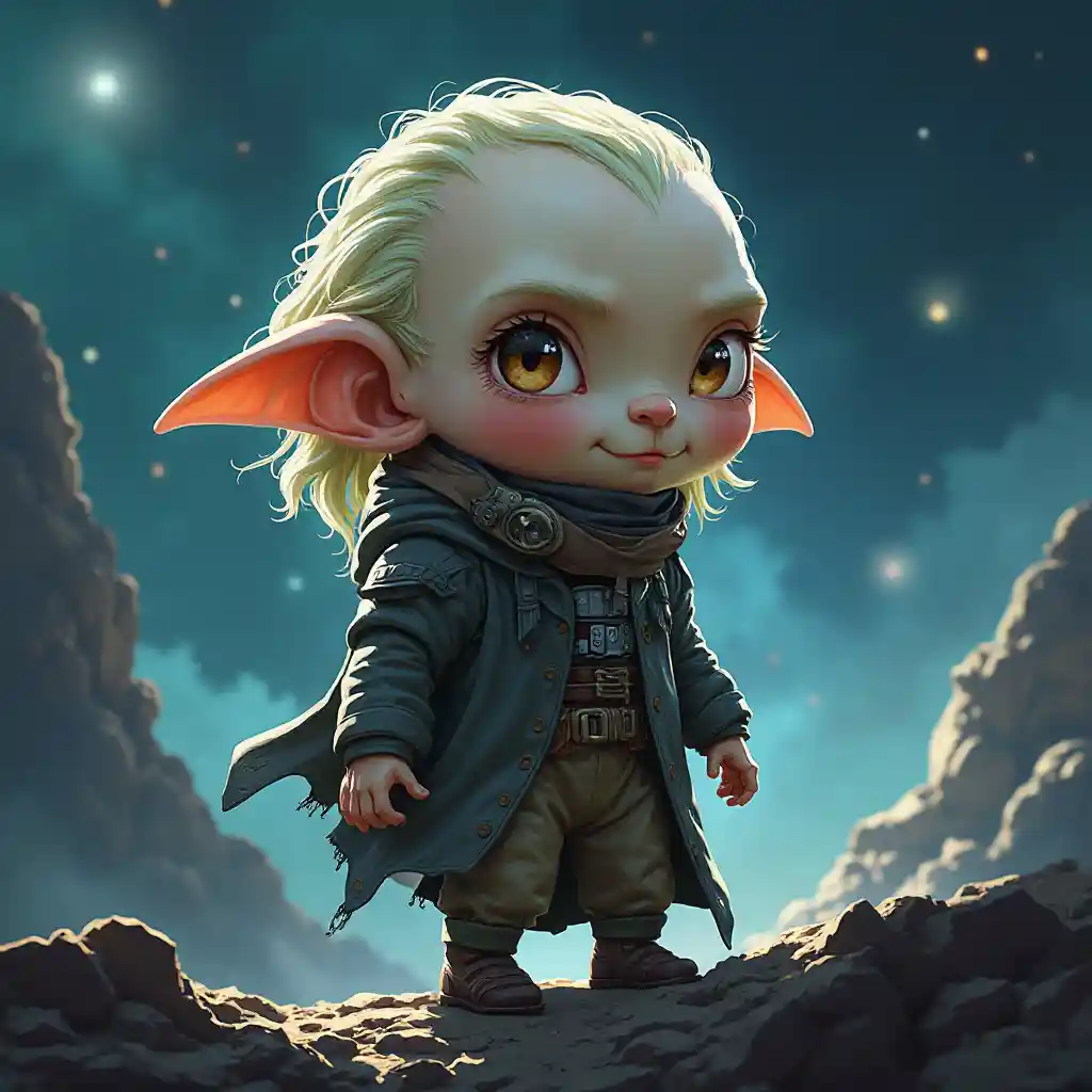 Gollum Chibi réaliste de science-fiction dans l'espace