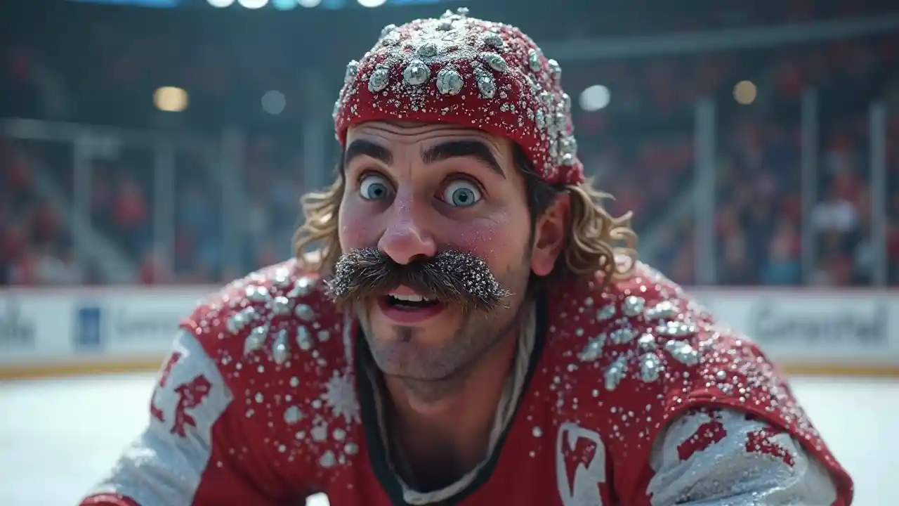 Be is as a hockey player,goofy looking,mustache,ice hockey,photo realistic,ray tracing,hyper real,unreal engine 5