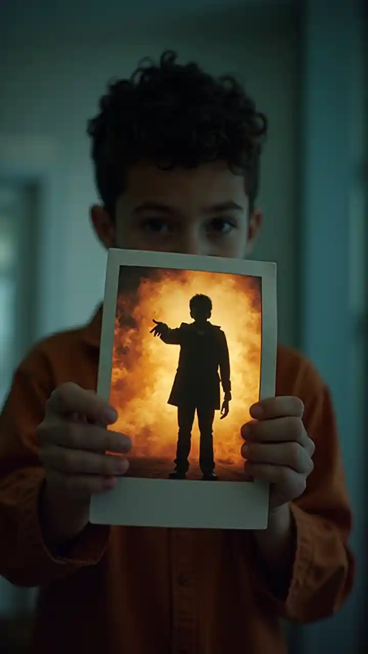 Le garçon rappelle Cole Cyr dans "Sixième sens", tenant à la main une photo de style polariseur avec un écran sur la photo montrant le contour de l'observateur, derrière lequel se cache un terrible personnage d'Halloween. Alors que la caméra est prête à capturer l'image, il pointe à l'arrière du point de vue du spectateur. Il portait un costume macabre d'Halloween avec la touche d'un lycéen innocent. Couleurs vives et saturées, couleurs contrastées.