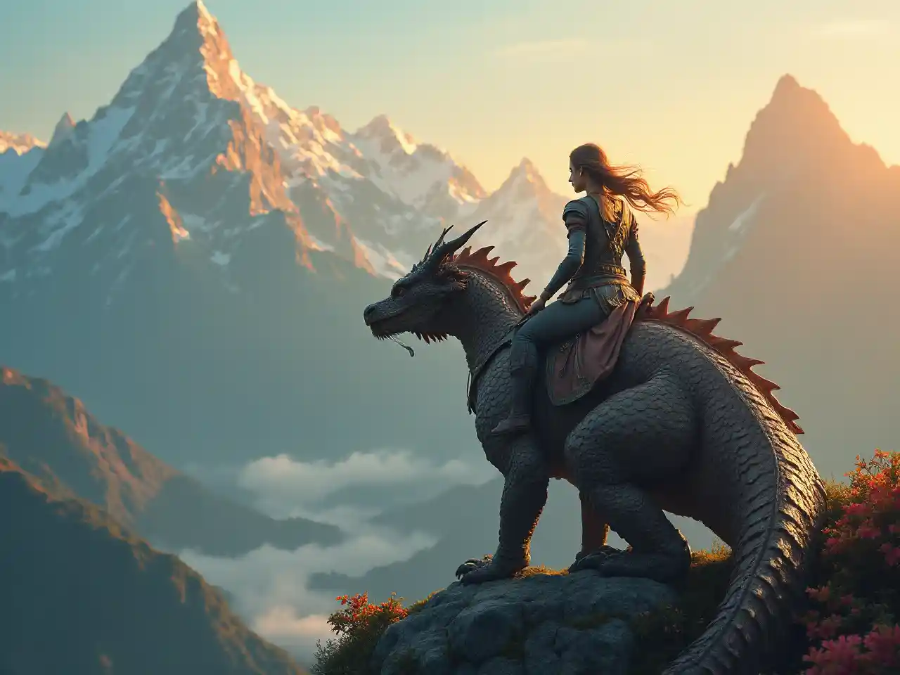 Un chef-d'œuvre incroyable et primé capturant les détails complexes et les scènes cinématographiques d'une femme aventurière solitaire, se tenant magnifiquement au-dessus d'un majestueux dragon. Le thème fantastique permet au public de s'immerger dans le vaste paysage haute définition, montrant l'étendue passionnante du royaume mythique avec une qualité extraordinaire de 64K. L'esprit aventureux de la jeune fille flotte dans le vent, son armure brille sous le ciel vigoureux et les écailles de dragon brillent avec un éclat éthéré. Leur voyage se déroule sur fond de montagnes imposantes et de vallées balayées.
