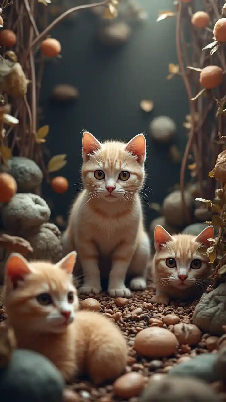 Création d'une scène de caché mettant en scène six chats déguisés