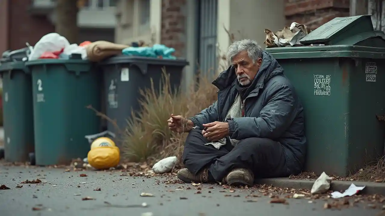 Le clochard s'approche des ordures → Ajoutez-le pour le laisser assis sans signe → Ajoutez plus de vêtements déchirés