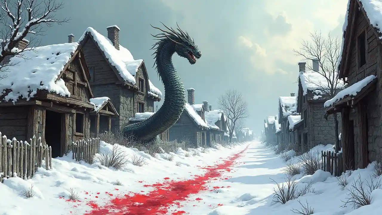 Dark Fantasy Hydra s'attaque à un village médiéval enneigé