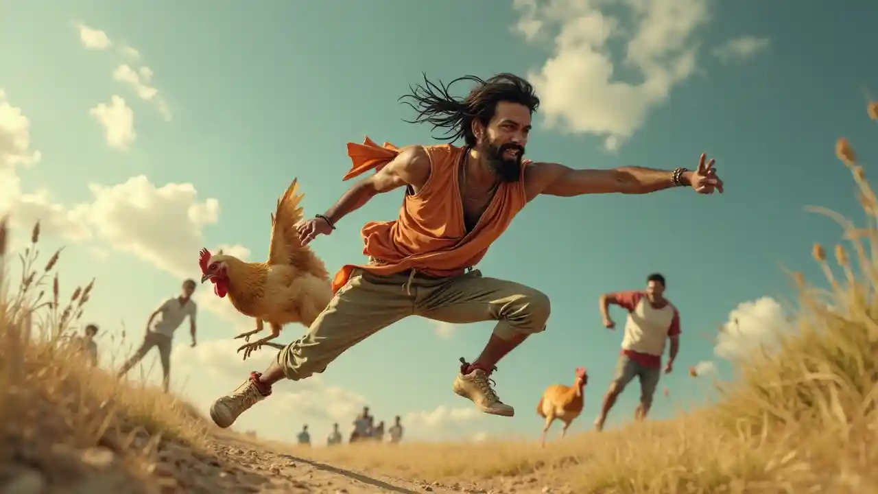 Un homme combat un bébé zombie en volant sur un poulet en Inde