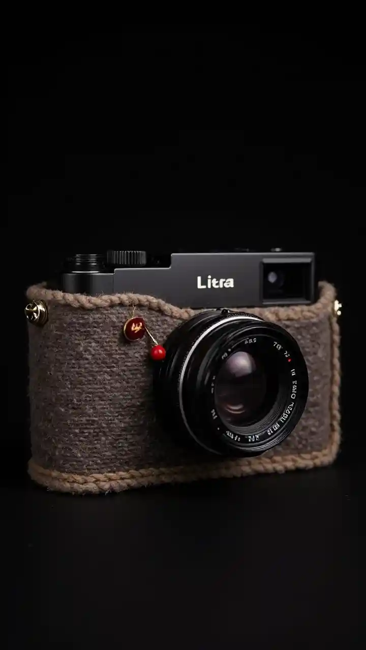 Appareil photo Leica avec boîtier en tissu en noir
