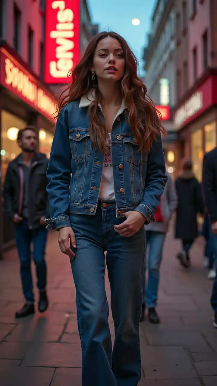 Le mouvement des jeans Levi's à la mode à Londres, le logo rouge emblématique, l'arrière-plan des rues urbaines, l'atmosphère dynamique de la vie urbaine, l'atmosphère jeune moderne, les effets visuels accrocheurs, les couleurs cool, l'éclairage dramatique, les modèles francs montrent le denim, la photographie ultra-détaillée 4K, capturez l'essence de la mode, l'énergie de la ville et l'environnement des tendances de la mode.
