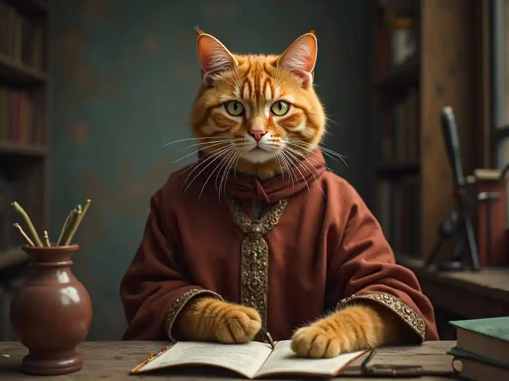 LaylaChat orange a trabajar, chat botté comme professeur de magie à Harry Potter, détails définitifs, chefs-d'oeuvre, portraits réalistes, photos primées