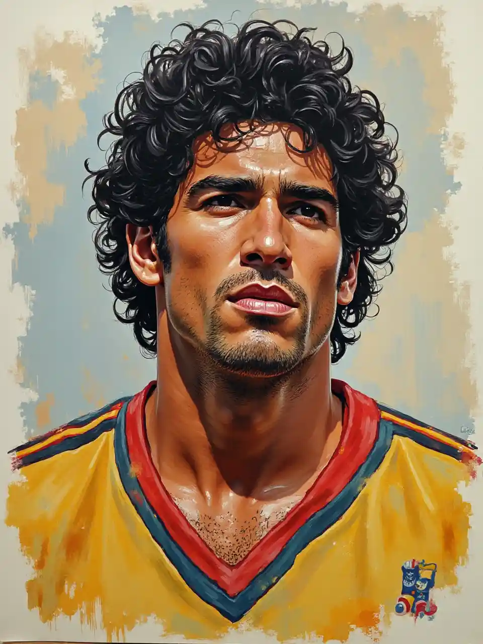 Photo épique Diego Maradona, dans le style d'Edwin-Georgi, peinture, huile, gouache, aquarelle, portrait